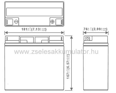 A Diamec 12V 20Ah zselés akkumulátor Méretei: 181x167x77 mm